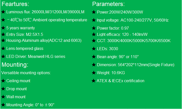 Explosion Proof LED Linear Light 200W/240W/300WModel No.: