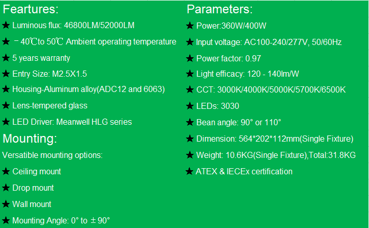 Explosion Proof LED Linear Light 360W/400WModel No.: